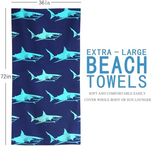 4 Packs Oversized Thin Beach Towel Set, XL Extra Large Big 36 x 72 in Clearance Swim Travel Towels Soft Blanket for Adult Women Men Lounge Chair Cover Accessories Essentials Blue Shark Pink Flamingos