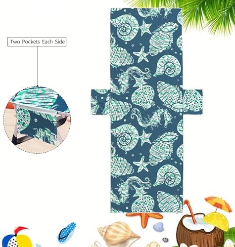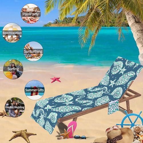 Beach Chair Cover with Side Pockets Thick and Quick Dry Chaise Lounge Chair Towel Cover for Sun Lounger Pool Sunbathing Garden Beach Hotel No Sliding