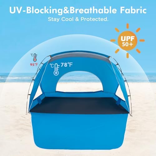 Beach Tent, Portable Sun Shelter for 2/3/4/6-8 Person with UPF 50+ UV Protection, Easy Setup Waterproof Beach Shade Canopy Cabana for Family Outdoor and Picnics, Fishing with Carrying Bag