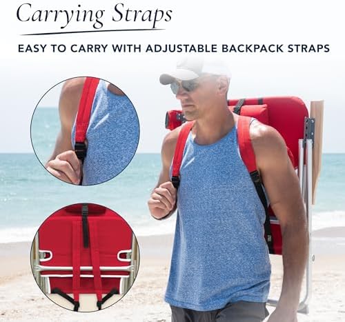 SPACE SAVING AND PORTABLE: This foldable beach chair for adults fits easily under an umbrella or tent, folds up easily, and features backpack straps for convenient portability, making this an excellent accessory for the beach, fishing, camping, and concerts; folds almost flat for easy storage in the car, garage, or deck box