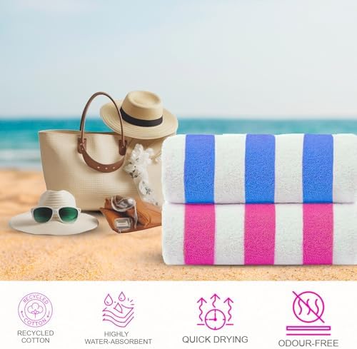 Large 30 x 60-inch beach towel (set of 4) cabana stripe pattern ideal for beach, pool, shower,