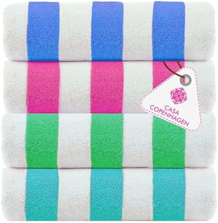 CASA COPENHAGEN Cabana Beach Towels Designed in Denmark Rough and Tough, Quick Dry, for Pool, Bath & Shower 30×60 inches 4 Pieces Cotton Beach Bath Towels Set – Turquoise,Royal Blue,Pink,Green