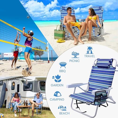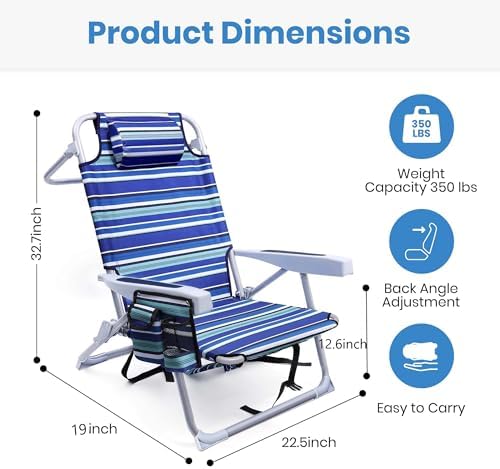Easy to Fold & Carry: Folding beach chairs can be opened and closed in seconds without the need for any tools. The beach chair comes with a backpack strap that you can easily back on your back to let your hands hold other items or enjoy the beach trip. And the beach chair back packs come with extra padding to take the pressure off your shoulders.