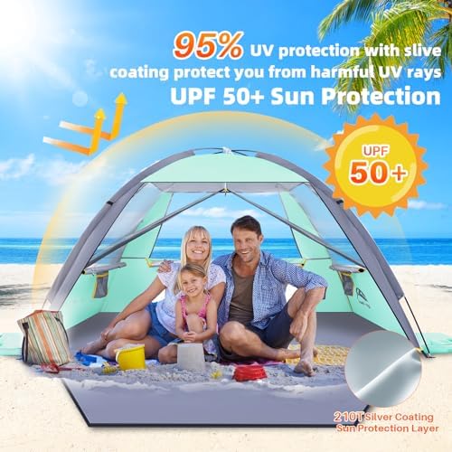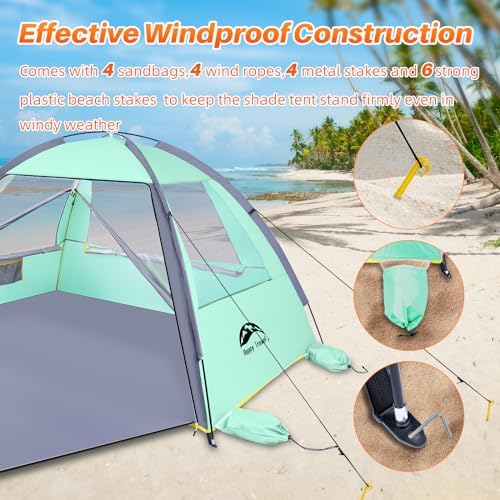 Happy Travel Beach Tent, UPF 50+ UV Protection Sun Shade Shelter for 3/4/5/6/7/8 Person, Portable Beach Canopy for Family & Baby, Lightweight & Easy Setup Beach Cabana with 3 Ventilation Mesh Windows