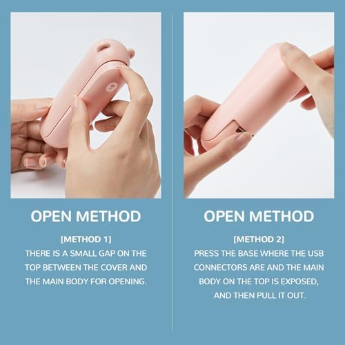 How To Open: Method 1: small gap between the cover and the fan body for opening. Method 2: press the base where the usb connecters are and the main body on the top is exposed, and the pull it out