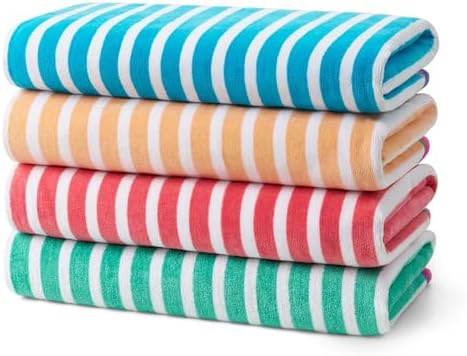 Kaufman – Colorful Racing Striped Beach & Pool Towel – Extra Large Beach Towel – Soft & Absorbent 100% Cotton Towels – Assorted Colors – 30″ x 60″ – 4 Pack