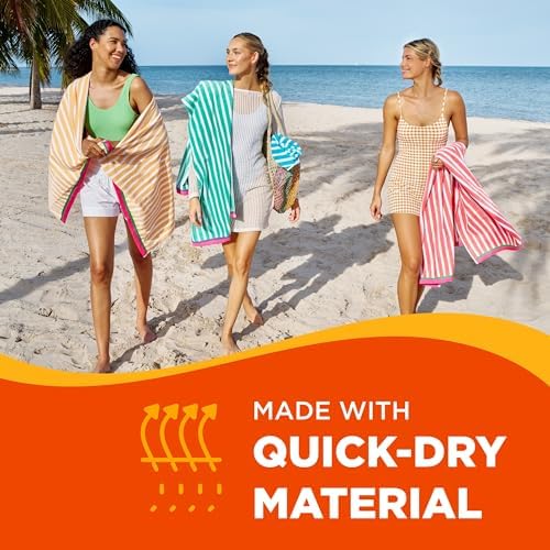 Soft and Plush: This 30″ x 60″ oversized beach towel is made of 100 percent combed ring spun cotton, making it ultra soft and plush to the touch; colorful racing striped beach towel adds a pop of color