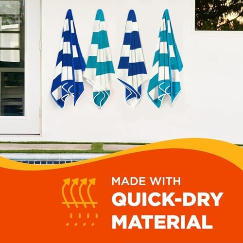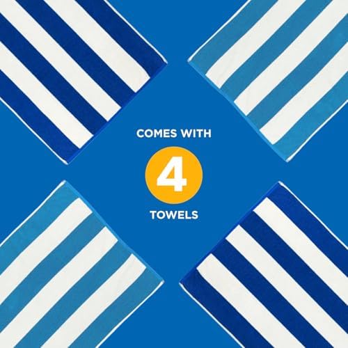 Kaufman – Large Beach Towel | 30″ x 60″ Terry Cabana Striped Beach Towels | Absorbent, Quick-Drying | 100% Cotton Thick Beach Towels (Blue/Turquoise, 4-Pack)