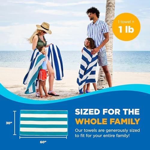 Oversized Beach Towel: At 30″ x 60″, this large cotton towel provides ample space for lounging, wrapping up, or drying off with ease after a swim