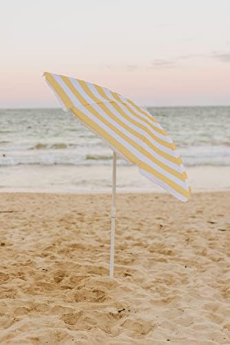 PICNIC TIME 5.5 Ft Outdoor Canopy Sunshade Beach Umbrella, Beach Chair and Small Patio Umbrella, (Yellow Cabana Stripe)
