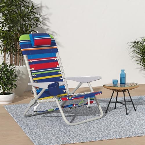 Rio Brands 4-Position Backpack Lace-Up Suspension Folding Beach Chair, Multi Color