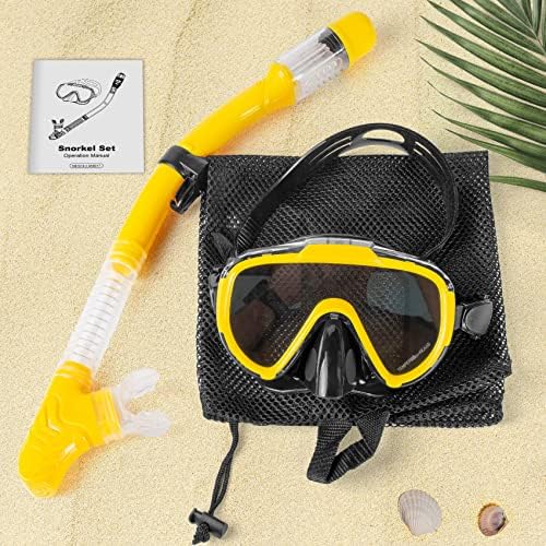 Snorkel Set, Zipoute Snorkel Dry Top Snorkeling Gear for Adults, Panoramic Anti-Leak and Anti-Fog Tempered Glass Lens, Adults Adjustable Snorkeling Set, Scuba Diving Swimming Training Snorkel Kit