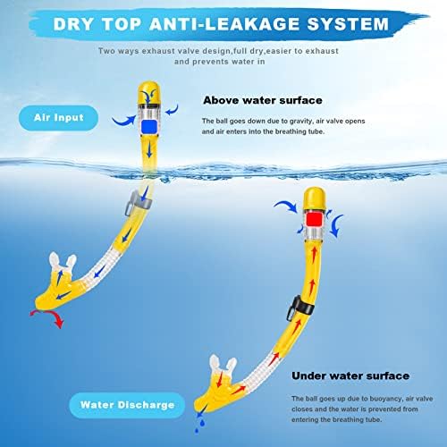 【Easy to Breathe Dry Snorkel】: The Snorkel adopts the most stable dry float valve design and can be fixed on the snorkel mask by a buckle. When immersed in water, the snorkel is sealed to prevent water from entering the breathing tube, the lower purge valve can quickly drain the water. Which is a great safety feature. The silicone mouthpiece is ergonomically designed, comfortable and durable. When diving and snorkeling underwater, you can enjoy relaxing and free breathing.