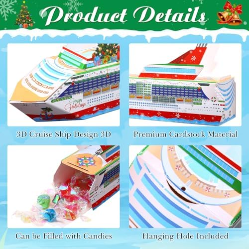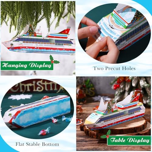 Spiareal 4 Pcs Christmas Cruise Ship Decoration Table Centerpieces Nautical Ornaments Fillable Candy Box Xmas 3D Christmas Tree Hanging Decor Gift for Ship Lovers Bon Voyage Ocean Party Supplies