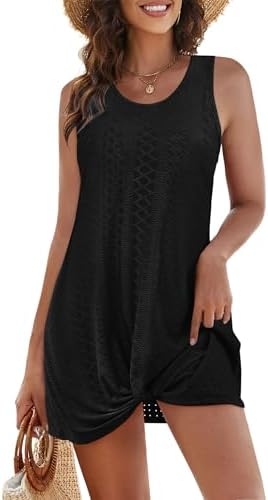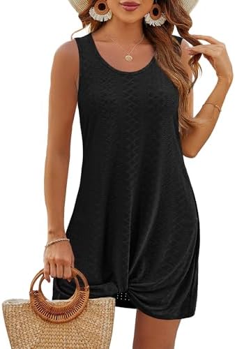 Swimsuit Coverup Summer Dresses for Women 2025 Eyelet Crew Neck Loose Sleeveless Sundresses Twisted Dresses