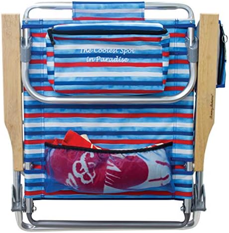 Tommy Bahama 5-Position Classic Lay Flat Folding Backpack Beach Chair, Aluminum , Red, White, and Blue Stripe